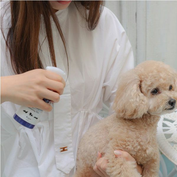 脱塩海洋深層水をベースにミツイシコンブエキス(M-034)、20種類のアミノ酸を含む加水分解卵殻膜を始め、コラーゲン、ケラチン、シルク(セリシン)配合。ドライヤーの熱や、ブラッシングでの乾燥・ダメージから、被毛を守るグルーミングミストです。 毎日のグルーミング時に、皮膚と被毛へスプレーしてください。ドライヤーで被毛を乾かす前にもお使いください。有効成分が沈殿する場合がございますので、ご使用前にボトルをよく振ってからお使いください。